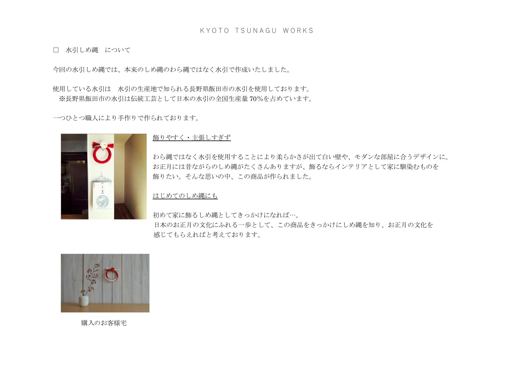 神事用品製造の川崎商店と水引職人が作った、水引しめ縄は、お正月用品としてはもちろん、その後も、お飾りの部分を外して、インテリアとしても楽しめるよう工夫されてプランニング。